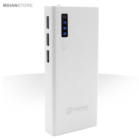 پاوربانک فانتسی 4000 میلی آمپر با ظرفیت اسمی 20000 میلیآمپرساعت محصول برند «Fantesi» است. این محصول با دو درگاه خروجی امکان شارژ همزمان دستگاههایتان را به شما میدهد. باتری این شارژر از نوع لیتیومی است و ولتاژ ورودی و خروجی این شارژر همراه 5 ولت است. بنابراین اگر دستگاههای 5 ولتی مانند گوشی، تبلت یا دوربین دیجیتال یا پخشکننده همراه دچار مشکل کمبود شارژ شد و به برق شهری یا خودرو دسترسی نداشتید، این پاور بانک مشکل شما را حل میکند. از روی نمایشگر دقیق درصد، میتوان میزان شارژ باقیمانده را فهمید و یک چراغ LED بزرگ روی آن وجود دارد. این چراغ هم مانند چراغقوه عمل میکند هم میتواند حالت چشمک زن داشته باشد. بدنهی آن از پلی کربنات و پلاستیک ABS ساختهشده است و جای خط و خش بهآسانی روی آن نمیافتد.
