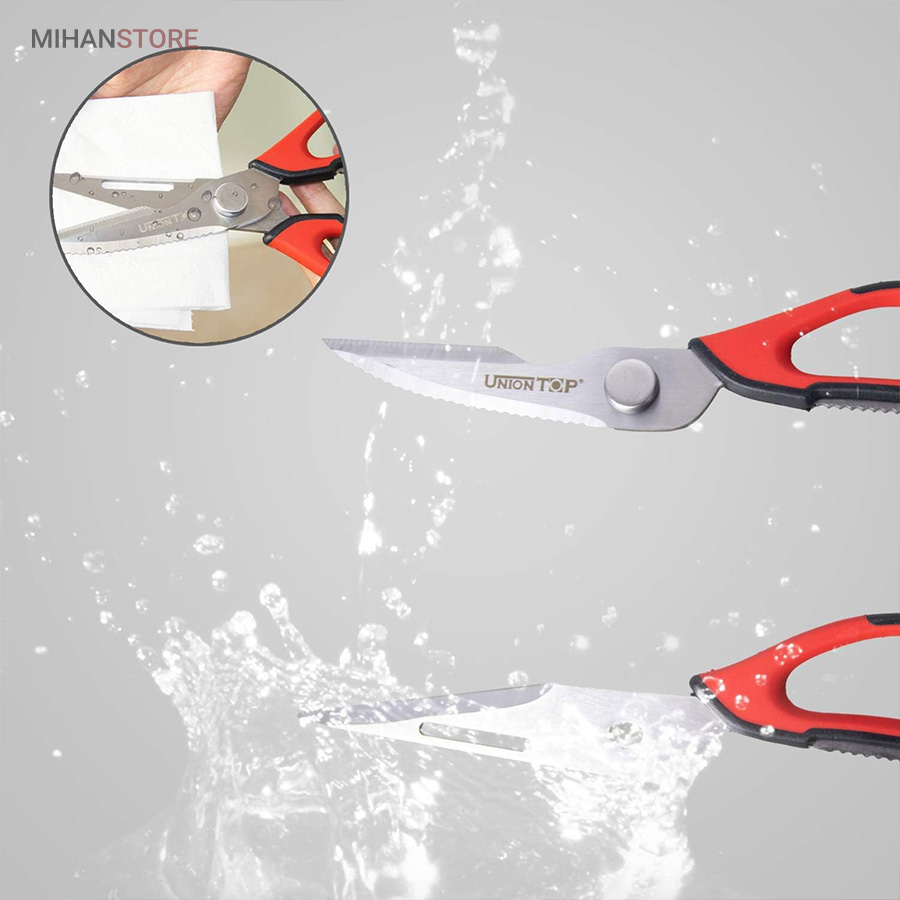 هم قیچی، هم بازکن، هم کابل کش و هم چاقو! این قیچی جادویی 8 کاره باورنکردنی در هر زمینه ای مفید خواهد بود. محصولی کاملاً جدید که باید در کار آشپزخانه خود داشته باشید و کار شما را آسانتر میکند و نمیتوانید نزدیک آن باشید. در آشپزخانه می توانیم هنگام سرو مرغ، سبزیجات را خرد کنیم یا به راحتی استخوان ها را برش دهیم. می توانید از آن به عنوان کرکر فندقی یا گردو استفاده کنید. به راحتی می توانید درب بطری های خود را باز کنید. به طور خلاصه، به لطف قیچی جادویی 8 کاره، کاری که در زندگی روزمره انجام می دهید اکنون کاربردی تر شده است. قابل شستشو در ماشین ظرفشویی می باشد.