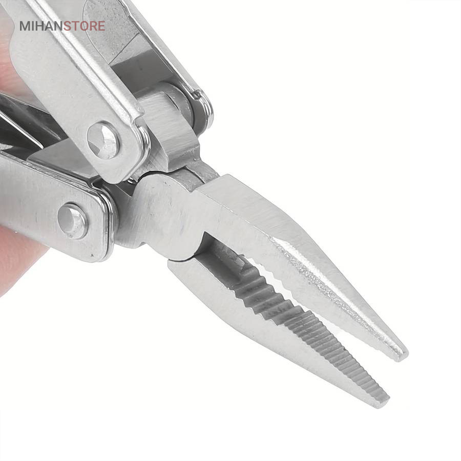 بسیاری مواقع در طول روز یا زمان سفر، به ابزار بسیار ساده‌ای مانند پیچ‌گوشتی، چاقو و… نیاز پیدا می‌کنید؛ ولی قطعا هیچ‌کس نمی‌تواند همه‌ی این ابزارها را در کنار خود داشته باشد. در چنین شرایطی یک مجموعه‌ابزار، بسیار کارآمد خواهد بود. این محصول ۷ ابزار با ۹ عملکرد دارد. از ابزارهای داخلی این محصول می‌توان به «در بطری باز‌کن» اشاره کرد که برای بازکردن در بطری نوشابه به شما کمک می‌کند. همچنین این محصول یک «تیغه چاقوی کوچک» دارد که برای آشپزی در زمان سفر کاربردی است. از دیگر ابزارها می‌توان به «اره» اشاره کرد که تقریبا تیز است و برای کارهای ظریف استفاده می‌شود. یک «پیچ‌گوشتی چهارسو» نیز در این مجموعه لحاظ شده است تا بتوان در صورت لزوم، با خیالی راحت از آن استفاده کرد. بدون شک کاربردی‌ترین ابزار این مجموعه «چراغ‌قوه‌» است. این چراغ‌قوه به صورت پیچی روشن و خاموش می‌شود و نور مناسبی برایتان تولید می‌کند. اصلی‌ترین ابزار این وسیله «انبردست» است که به‌نسبت اندازه‌اش، قدرت مناسبی دارد. قسمت پایینی انبردست نیز به دلیل تیغه‌هایی که دارد، مانند سیم‌چین عمل می‌کند. برای اینکه بتوانید این محصول را با راحتی بیشتری حمل کنید، کیف کوچکی نیز همراه آن عرضه شده است.