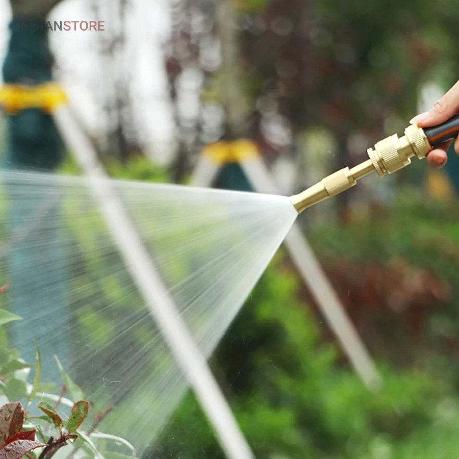 کارواش سر شلنگی برنجی یک گجت کاربردیست که با اتصال به سر شلنگ تبدیل به یک کارواش شلنگی پرقدرت شده که می تواند فشار آب را تا حدودی تقویت کند تا به سادگی بتوانید مانند یک کارواش از آن استفاده کنید و نگران فشار پایین آب نباشید.اگر از دسته افراد علاقه مند به باغبانی، گل و گیاه کاری، کشاورزی، شستن ماشین و… هستید، دیگر نگران نباشید، با این محصول، بسیاری از مشکلات افرادی که در این شغل ها هستند را برطرف می کند.این سر شلنگ از جنس برنج ساخته شده است که در برابر آب و هوا مقاوم است و اصلا زنگ نمی زند. همچنین دیگر نیاز نیست به دنبال کارواش های گران قیمت باشید، این سر شلنگ مشکل شما را حل خواهد کرد. کافی است سر شلنگ را به شلنگ معمولی متصل کرده و یک کارواش خانگی داشته باشید. از دیگر ویژگی های این محصول قابلیت تنظیم شدن آن است، یک نازل دارد که آب را از مدل سوزنی تا پخش شونده به صورت کامل تنظیم می کند.این سر شلنگ طوری طراحی شده که می توان برای شستشو خانگی ماشین، کف حیاط، آبیاری گل و گیاه و باغچه از آن استفاده کرد. این آب پاش طوری ساخته شده که به گل و گیاه آسیب وارد نمی کند.اگر حیوان خانگی دارید، می توانید این آب پاش را تنظیم کرده و حیوان خانگی خود را به  راحتی بشویید.