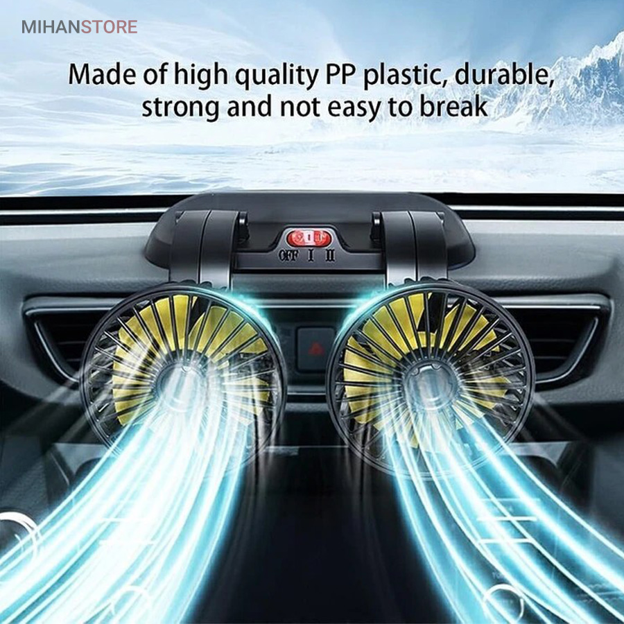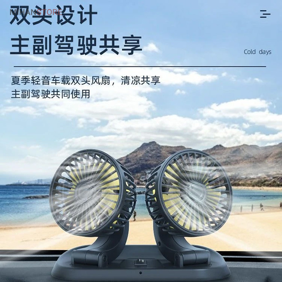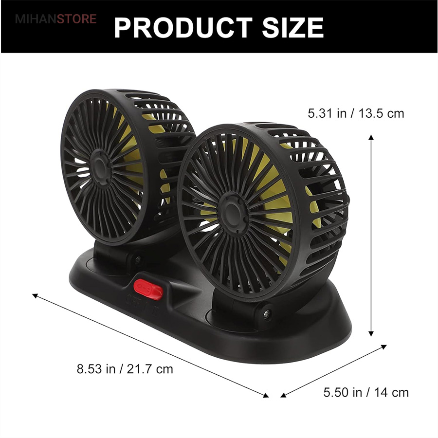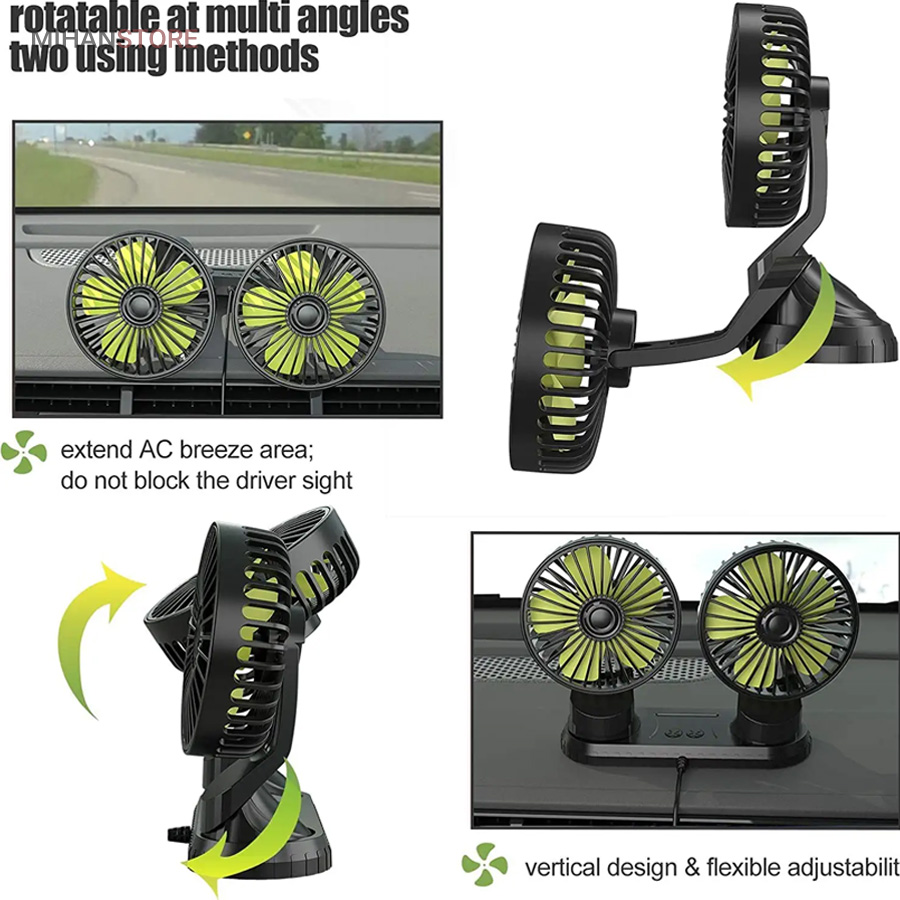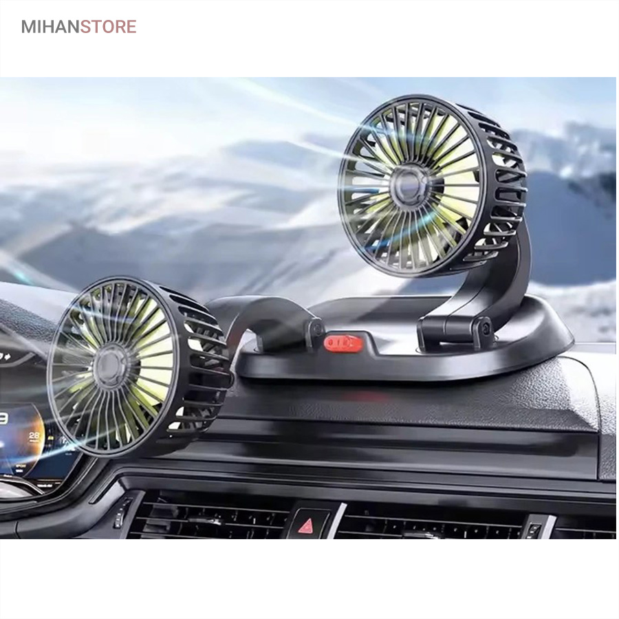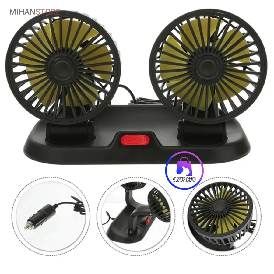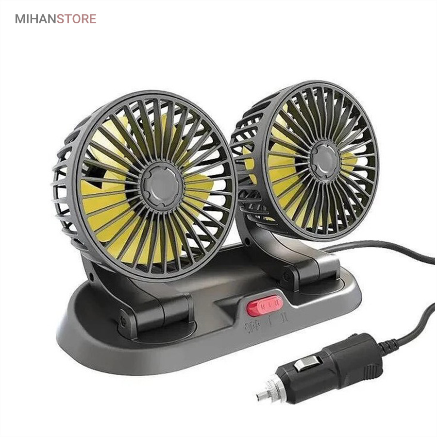 پنکه دو قلو فندکی خودرو یک وسیله کوچک، اما بسیار کاربردی و لازم، برای مواقعی که در داخل اتومبیل مشغول رانندگی و یا در حالت توقف احساس گرما کردید، بسیار کارآمد بوده و با وزن کمی که دارد براحتی قابل حمل می باشد. جنس بدنه پنکه  از پلاستیک فشرده بسیار مقاوم است، و هر فن دارای 5 پره می باشد. قدرت این پنکه خودرو 10 وات و حداکثر جریان آن 1 آمپر می باشد. از ویژگیهای دیگر این پنکه قابلیت تنظیم ارتفاع و چرخش آن تا زاویه 360 درجه می باشد و با پایه ای که روی آن طراحی شده است می توانید براحتی روی داشبورد خودروی خود بدون اینکه فضای زیادی را آشغال کند بگذارید. پنکه دو قلو فندکی خودرو درای قدرت باد بسیار عالی در نوع خود بوده و با دکمه پاور 2 حالته میتوان از دو حالت باد کم سرعت و پر سرعت آن استفاده کنید. منبع تغذیه پنکه دو قلو فندکی خودرو جا فندکی خودرو بوده و بسیار کم صدا و دارای کیفیت ساخت بسیار بالایی است.