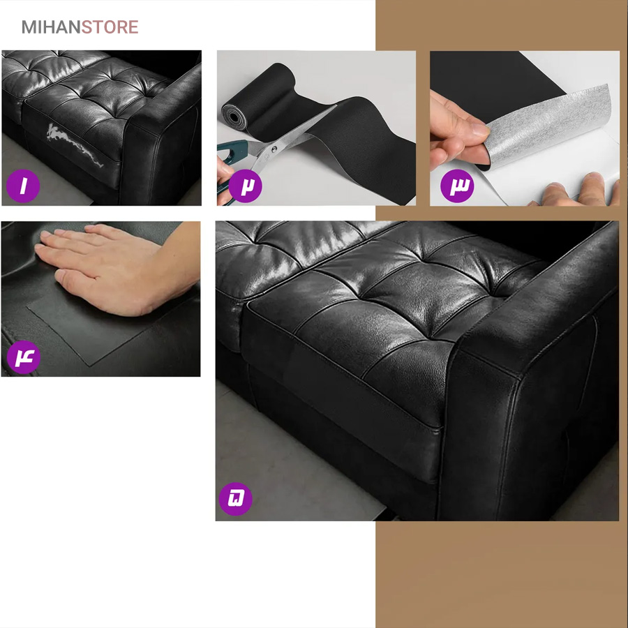 نوار چسب ترمیم و بازسازی چرم یک راه حل سریع و آسان برای تعمیر پارگی‌ها، خراش‌ها و سایر آسیب‌های سطحی روی انواع محصولات چرمی مانند مبل، صندلی ماشین یا موتور سیکلت، کیف و لباس است. این نوارها معمولاً از جنس چرم مصنوعی با یک لایه چسب قوی در پشت ساخته شده‌اند و به راحتی قابل استفاده هستند. چسب چرمی ۲۰×۱۰۰ سانتی متری مخصوص مبل و وسایل چرمی یک چسب منحصر به فرد بوده که با آن می توانید هرچیز چرمی را ترمیم یا تعمیرکنید. به عنوان مثال قسمتی از مبل شما که هزینه زیادی برای آن کرده اید، پاره شده یا دچار خش و رفتگی رنگ شده است و حال بهترین راه این است که بایک چسب چرمی شکیل بدون این که جای دوختی باقی بماند آن را ترمیم نمایید . این  چسب باید  قوی باشد و همچین از جنس چرم مصنوعی باشد تا بتواند زیبایی مبل را حفظ کنید. این چرم فقط برای مبل وصندلی نیست و استفاده های فراوانی دارد. به عنوان مثال برای ترمیم کیف ، صندلی خودرو ، صندلی اداری ، کاپشن چرمی ، و هر آن چیزی که از جنس چرم  طبیی یا چرم مصنوعی ساخته شده باشد بهترین راه حل نوار چسب ترمیم و بازسازی چرم است . چرم چسبدار یک لایه چرم و یه لایه برچسب جدا شوند دارد که پس از برش به میزان دلخواه و کندن روکش در محل نصب شده و با حفظ  زیبایی وسیله شما ترمیم و از پش روی پارگی جلوگیری میکند . این لایه چسب را میتوانید با برش به وسیله قیچی به هرشکل در بیاورید و علاوه بر ترمیم برای زیبای سازی نیز استفاده نمایید.