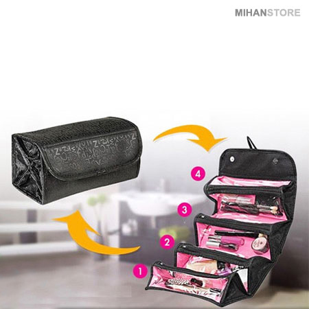 خرید کیف لوازم آرایشی رولی پیشنهاد ویژه ی ما به افرادی است که همواره از آشفتگی و به هم ریختگی وسایل خود شکایت دارند. کیف رولی لوازم آرایش Roll N Go با فضای فوق العاده زیادی که دارد، می تواند تمام لوازم آرایش، کرم ها، زیور آلات و جواهرات شما را در خود جا دهد و با توجه به حجم کمی که اشغال می نماید، می توانید آن را در همه جا با خود حمل کرده و به همراه داشته باشید. جنس این کیف از پلی استر است و دارای 4 محفظه مجزا نیز می باشد. هم چنین حلقه ای در بالای این کیف تعبیه شده است که این امکان را فراهم می سازد تا آن را در هر نقطه ای که خواستید آویزان نمایید. این کیف می تواند تمام نیاز شما را برای زیباتر شدن، برطرف کند.